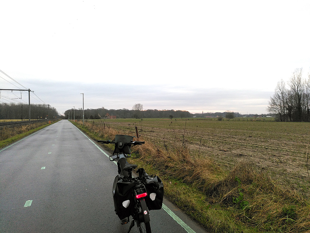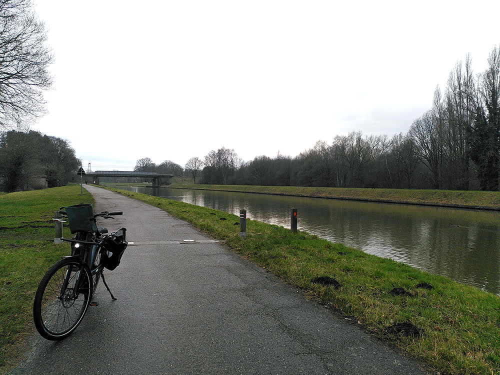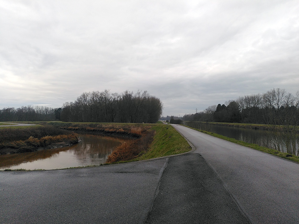 I still have some distance to cross before reaching Wijnegem, but I think I can see the bridge in the distance.